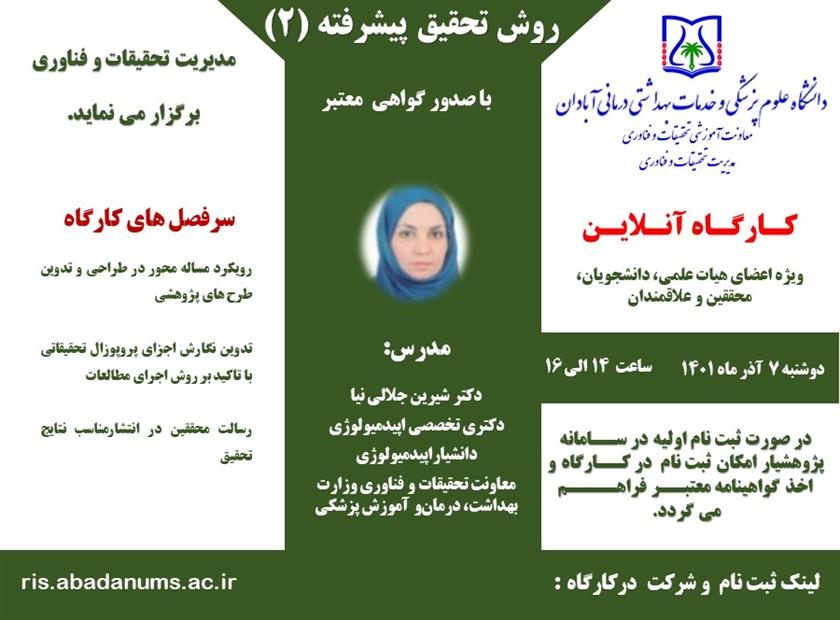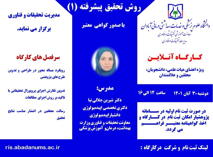 اطلاع رسانی کارگاه روش تحقیق پیشرفته 2 دانشگاه علوم پزشکی آبادان