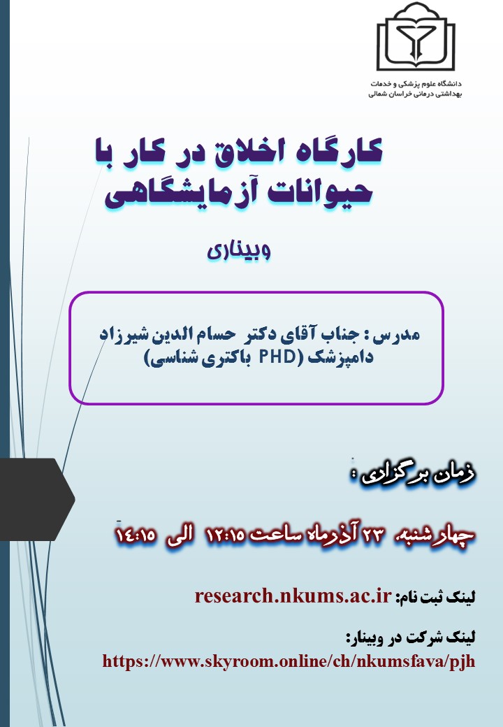 فراخوان کارگاه آموزشی اخلاق در کار با حیوانات آزمایشگاهی دانشگاه علوم پزشکی خراسان شمالی