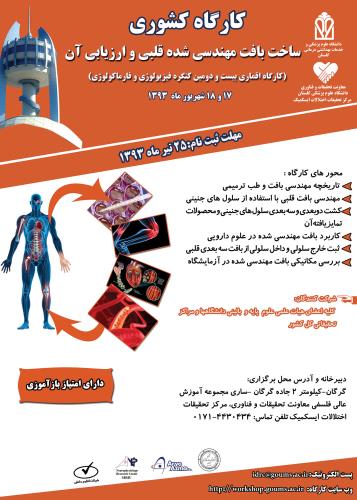 به اطلاع اعضای محترم هیئت علمی و دانشجویان دوره دکتری تخصصی میرساند کارگاه کشوری تولید بافت مهندسی شده قلبی و ارزیابی آن توسط معاونت تحقیقات و فناوری دانشگاه علوم پزشکی گلستان با همکاری استاد مدعو پروفسور الیوت السون "استاد برجسته بیوشیمی و بیوفیزیک مولکولی" از دانشگاه واشنگتن میسوری در تاریخ 18و17 شهریور 1393 در دانشگاه علوم پزشکی و خدمات درمانی استان گلستان برگزار خواهد شد .از افراد علاقمند درخواست می گردد سریعتر برای ثبت نام اقدام و جهت کسب اطلاعات بیشتر و ثبت نام به آدرس اینترنتی www.workshop.goums.ac.ir مراجعه نمایند