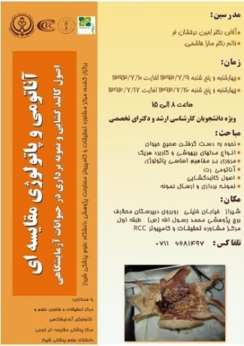 به اطلاع میرساند اولین کارگاه کشوری آناتومی و پاتالوژی مقایسه ای اصول کالبد گشایی و نمونه برداری در حیوانات آزمایشگاهی ویژه دانشجویان تحصیلات تکمیلی و دکتری تخصصی در تاریخ های 10-9 مهر 93 و 17-16 مهر 93 در مرکز مشاوره تحقیقات و کامپیوتر دانشگاه علوم پزشکی شیراز برگزار خواهد شد .علاقمندان جهت ثبت نام در کارگاه مذکور به لینک زبر مراجعه نمایند
